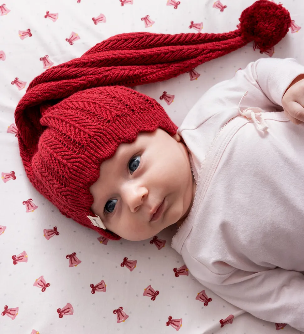 Charmerende MarMar nissehue i en dyb rød farve. MarMar nissehuen har en klassisk form med en dekorativ kvast, der giver et traditionelt udseende. Perfekt til at tilføje et strejf af julestemning.