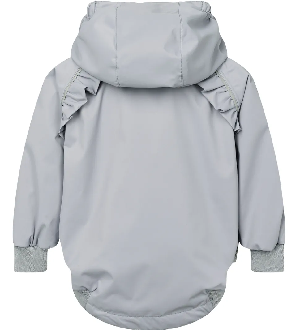 MarMar sommerjakken har en aftagelig hætte, som sidder fast med skjulte trykknapper. Ærmerne har brede ribkanter, og i siderne har jakken ribkant i bunden. Foran og bagved ærmerne sidder der søde flæser.