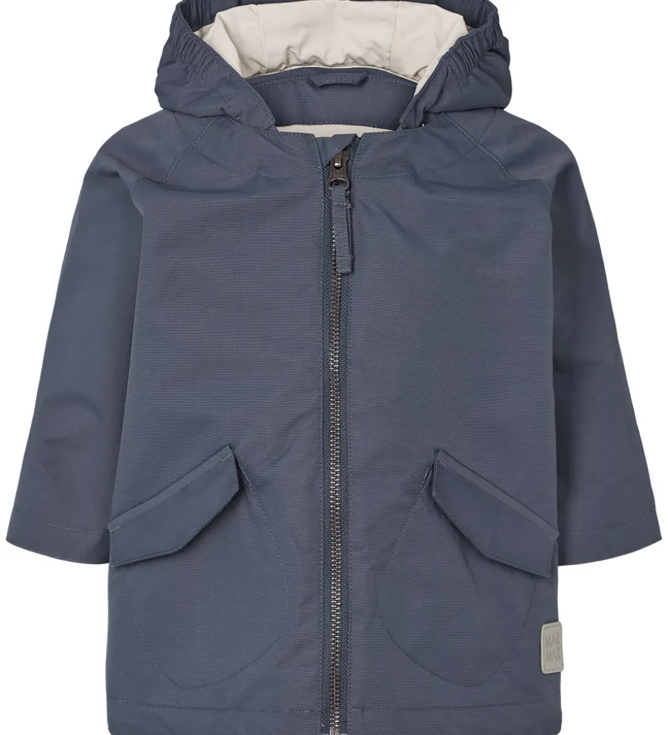 MarMar sommerjakken har to klaplommer på fronten og en foldedetalje på tværs af ryggen. Livåbningen kan justeres ind med elastikspænder på indersiden. Sommerjakken er ikke vatteret og har et glatvævet for.