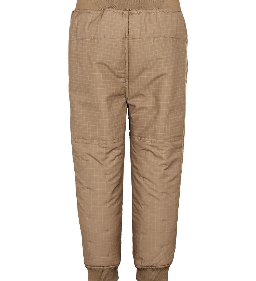 Flotte MarMar termobukser i brun med et ternet mønster med refleksprint.