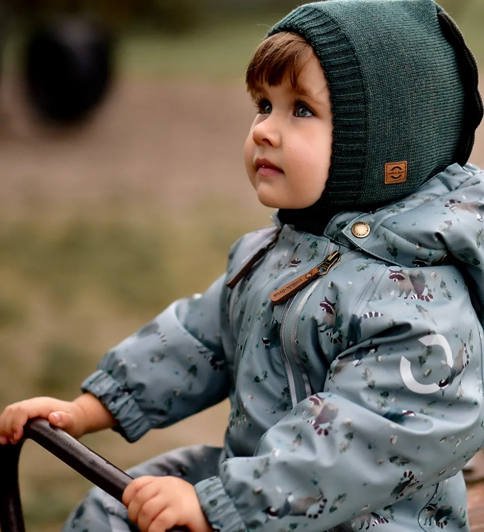 Mikk-Line elefanthuen åbnes ved halsen med trykknapper og har en bred ribkant ved ansigtet. Den er i en lækker uldblanding yderst og har blød bomuld inderst.