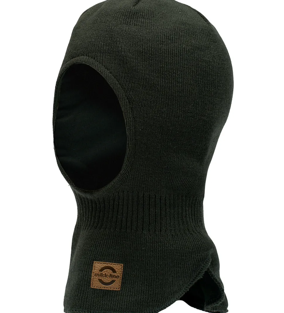 Mikk-Line elefanthuen har en rund hovedform med rib omkring halsen og en praktisk split-effekt i bunden. I siderne er der ekstra forstærkninger, som beskytter ørerne mod kold vind. Elefanthuen er udvendigt strikket i en blød blanding af merinould og akryl og har et glatvævet bomuldsfor.