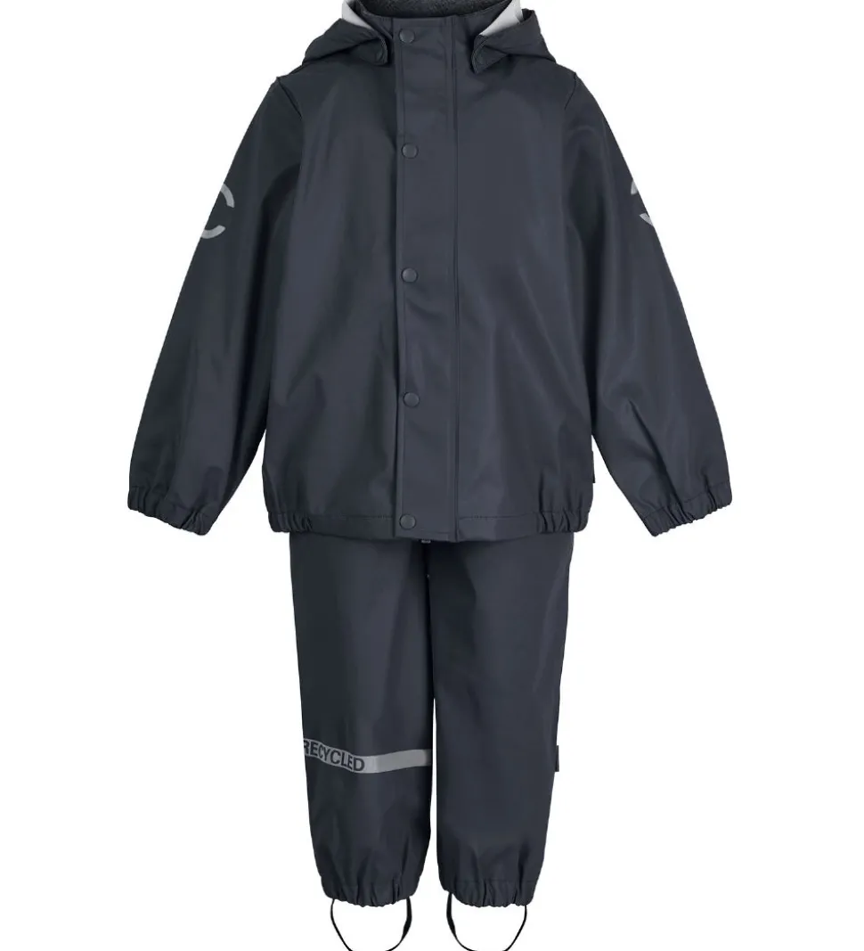 Flot Mikk-Line regntøj bestående af en regnjakke og et par regnbukser i ensfarvet, navy PU.