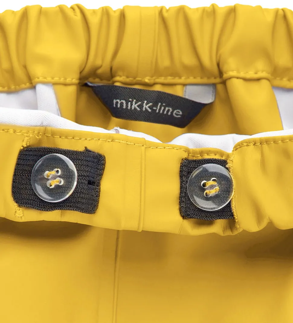 Skønt Mikk-Line regntøj bestående af en regnjakke og et par regnbukser i ensfarvet, gul PU.