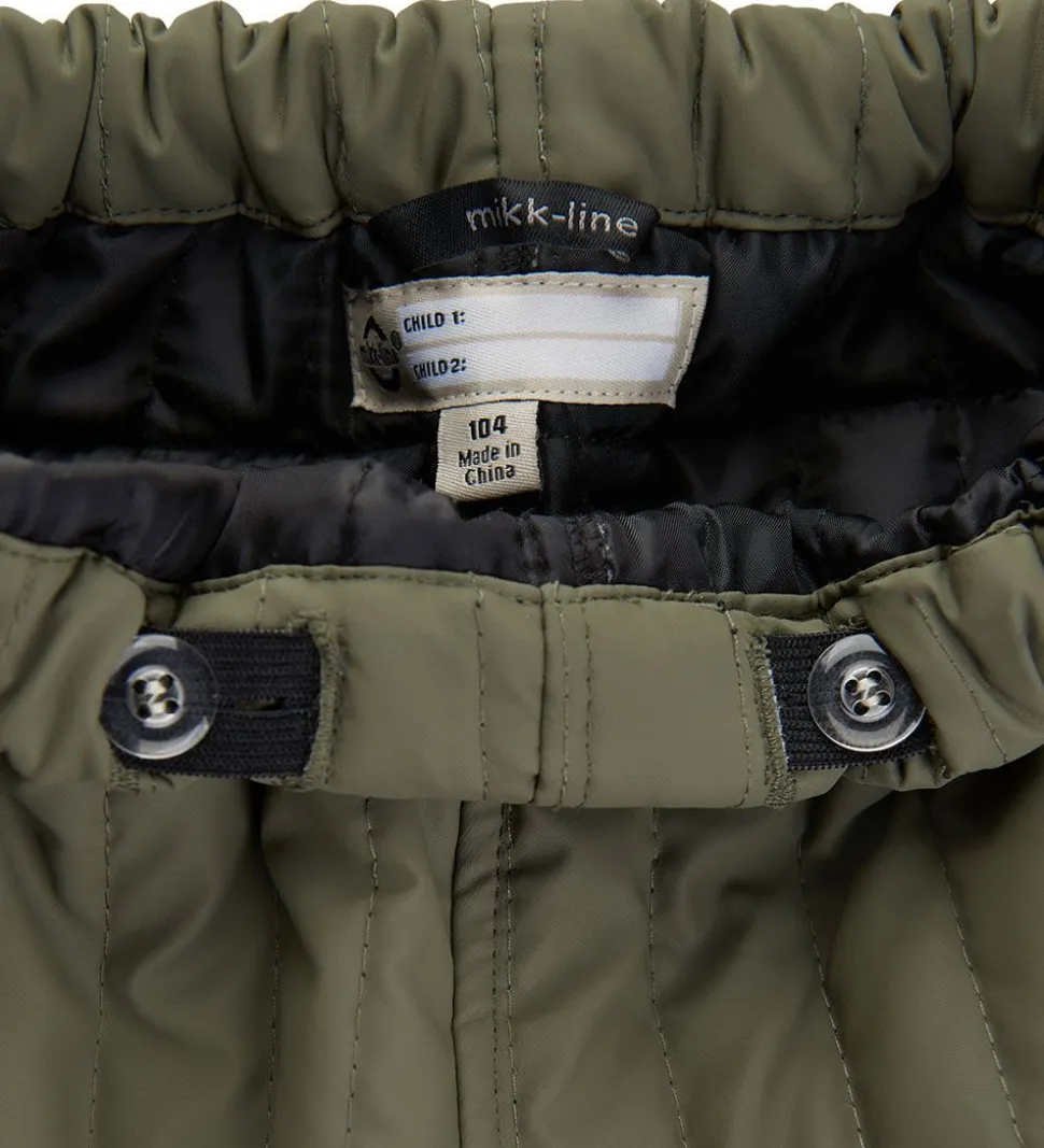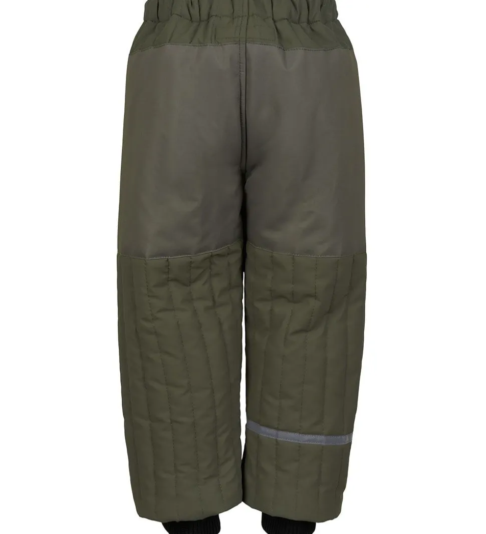 Fede Mikk-Line termobukser i støvet olivengrøn med lodrette syninger og med sorte ribkanter.