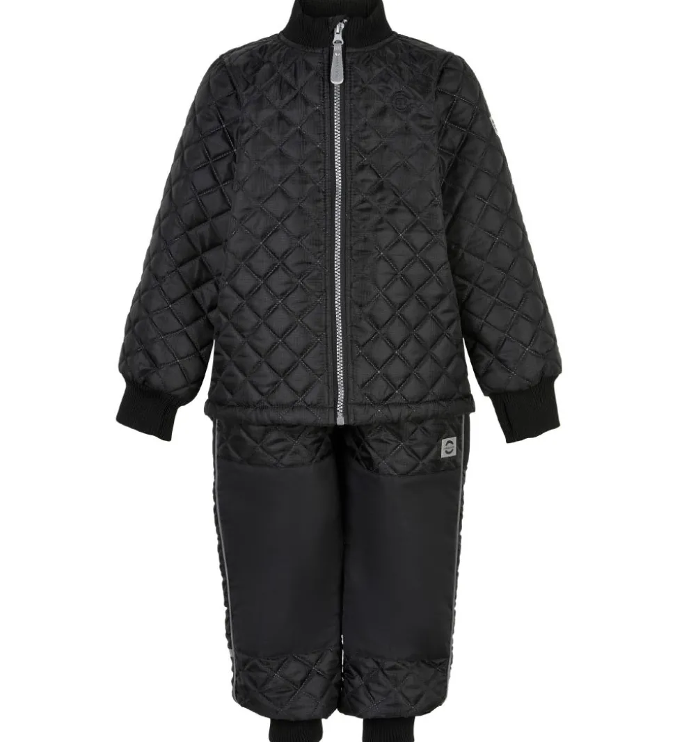Smart Mikk-Line termotøj bestående af en termojakke og et par termobukser i sort med en quiltet struktur.