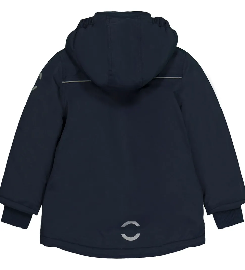 Skøn Mikk-Line vinterjakke i mørkeblå med refleksdetaljer.
