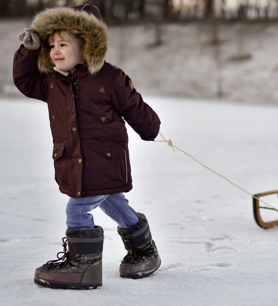 Skøn Mikk-Line vinterjakke i en mørk, burn nuance med lædertaljer og refleksdetaljer.
