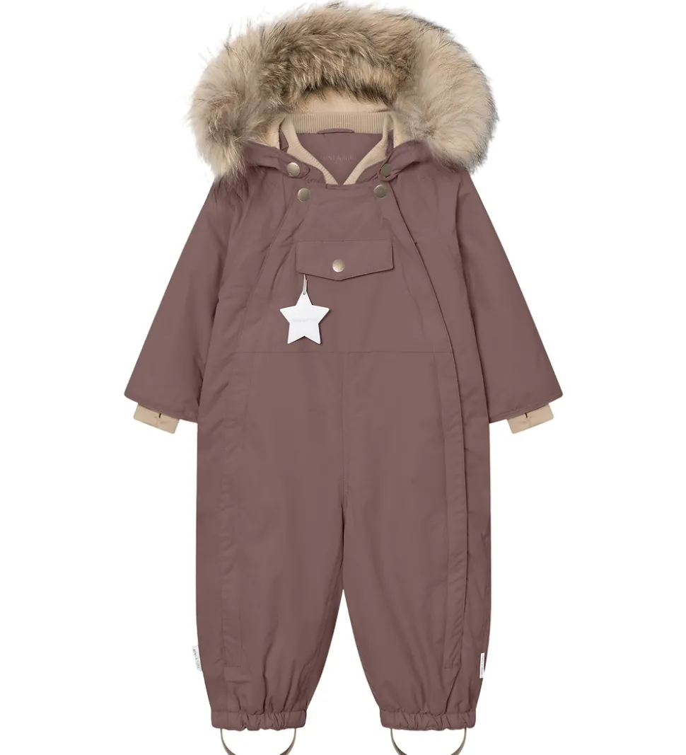 Mini A Ture flyverdragtens hætte er aftagelig, samt er den foret med fleece, og så har den en skjult elastiksnøre, så den sidder tæt omkring ansigtet. Ansigtsåbningen har en flot pelskant, som sidder fast med en lynlås. Der er en lækker ribkant i kraven, der gør den ekstra behagelig. Flyverdragten er foret med lækkert blødt fleece i kroppen, mens der er glatvævet for i ærmer og ben. Flyverdragten har en skjult elastiksnøre der kan justeres indvendigt, så flyverdragten sidder godt i taljen.