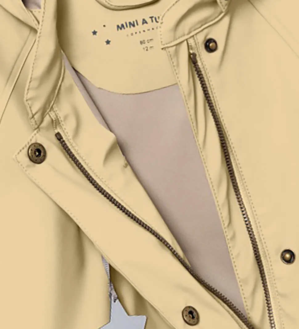 Fint Mini A Ture regntøj af PU i en støvet beige nuance med et gult skær.