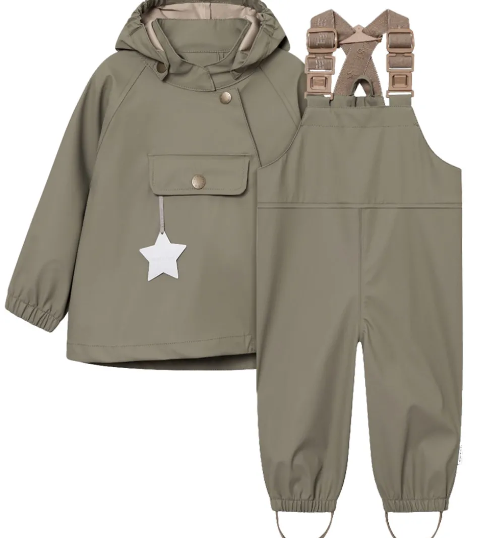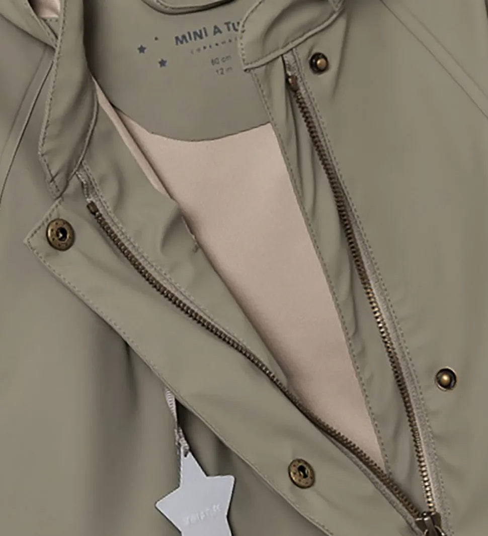 Fint Mini A Ture regntøj i mørk, støvet grøn af PU.