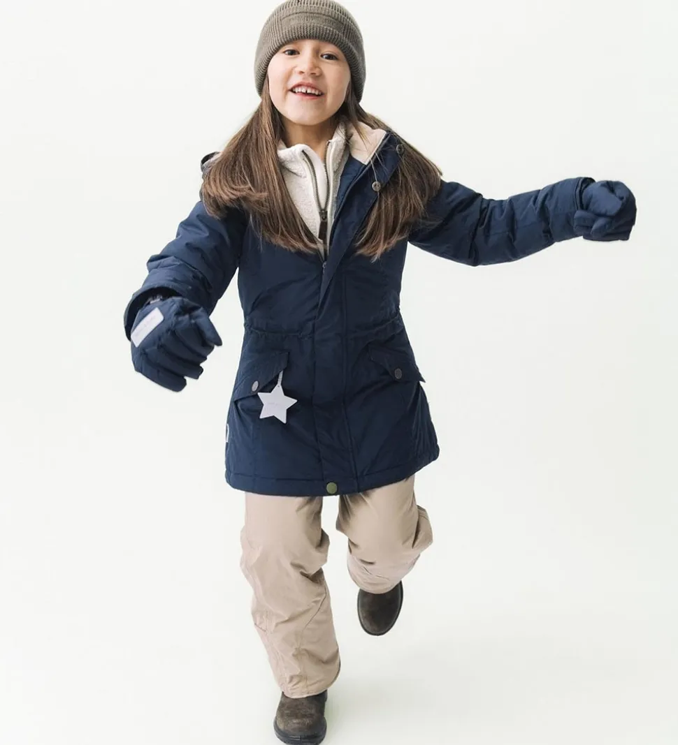 Flot Mini A Ture vinterjakke i navyblå. Vinterjakken er med beige for.