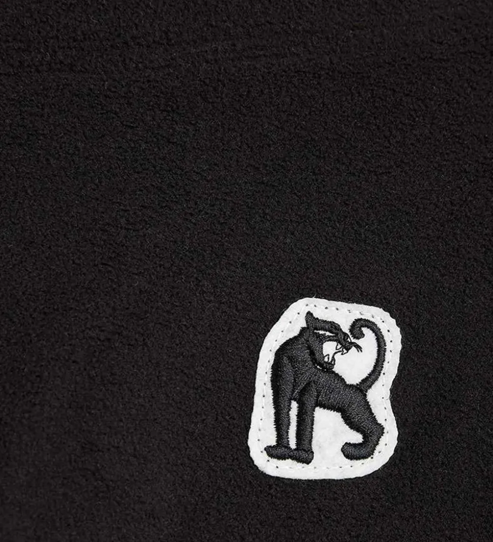 Fin Mini Rodini fleecebukser i sort med en hvid applikation med en sort panter på venstre hofte.