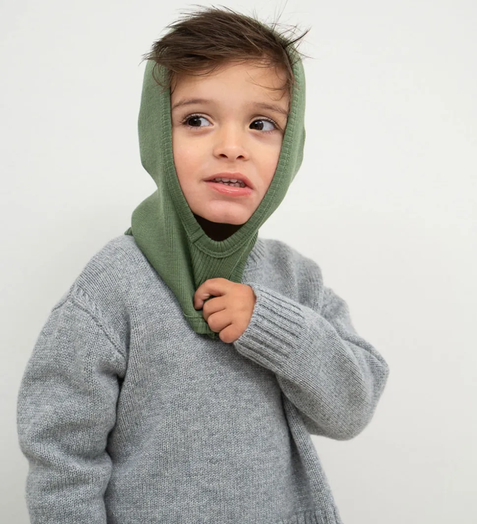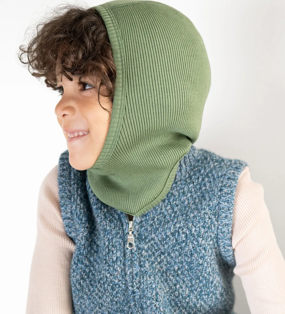 Smart Minimalisma elefanthue i grøn med ribstruktur, og den er lavet af blødt merinould. Minimalisma elefanthuen har en rund hovedform med en split-effekt i bunden, som giver et godt fit, og den består af et enkelt lag.