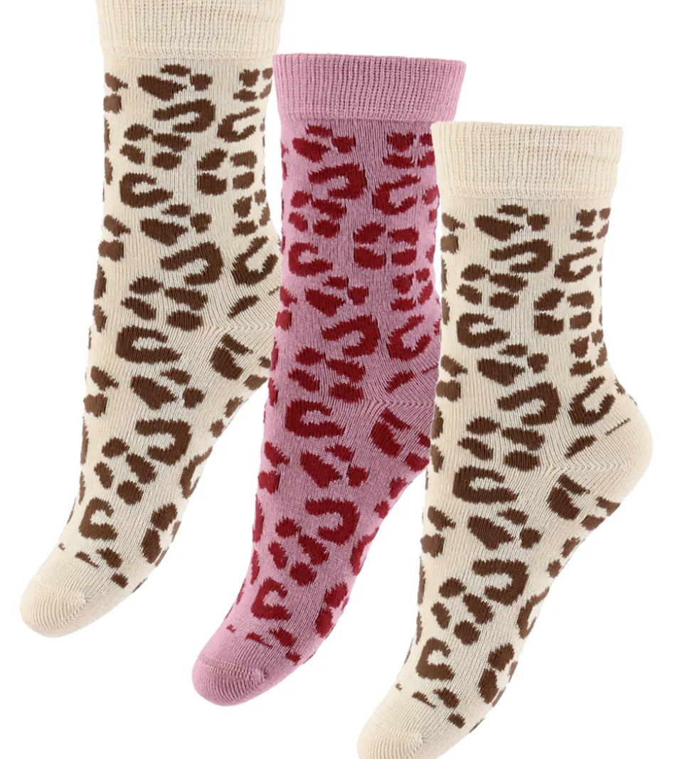 Fremragende MiniPop strømper i en 3-pak med to par i beige og et par i rosa, alle med et leopardmønster i brune nuancer. MiniPop strømperne har en smal ribkant øverst, hvilket sikrer en god pasform. Designet giver et flot og moderne udseende.