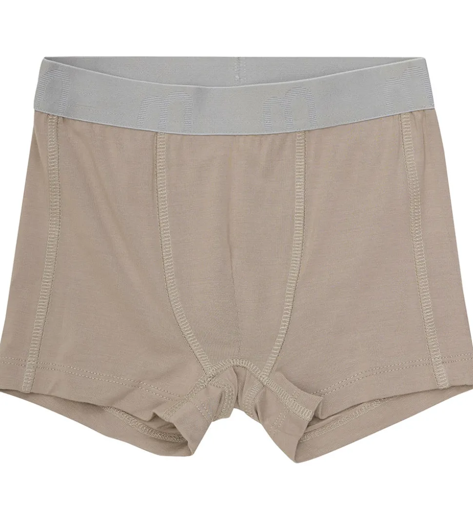 Minymo boxershortsene har et klassisk fit med en bred elastikkant i livet med “m” stående hele vejen rundt i grå.