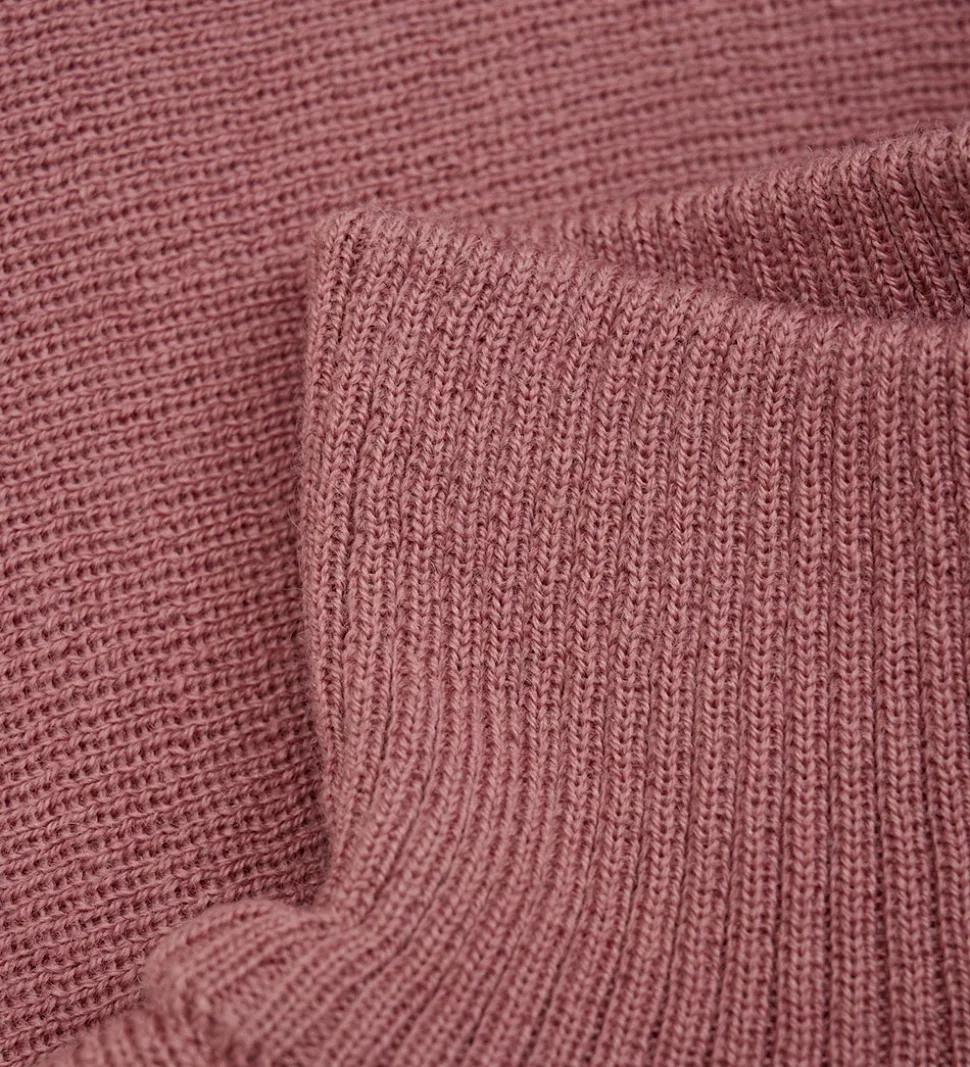 Minymo halsedissen har en høj ribhals og går godt ned og dækker både på brystet og i nakken. Halsedissen er i en lun uld/akryl-blanding.