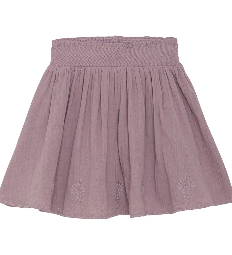 Fin Minymo nederdel i en blød lyslilla farve med dekorative broderede detaljer. Nederdelen har en elastisk talje, der sikrer god pasform og komfort. Perfekt til leg eller afslapning i sommerens varme. Nederdelen er lavet af fastvævet musselin.
