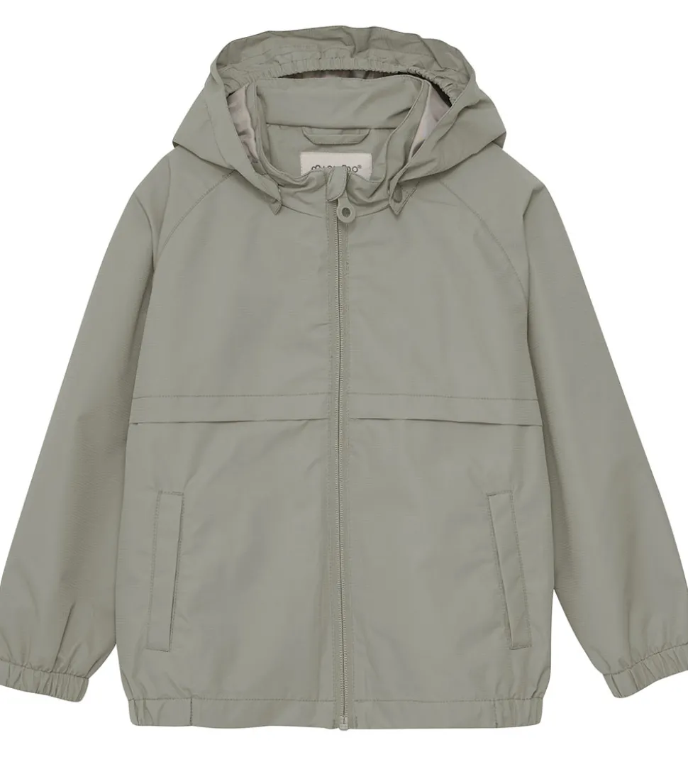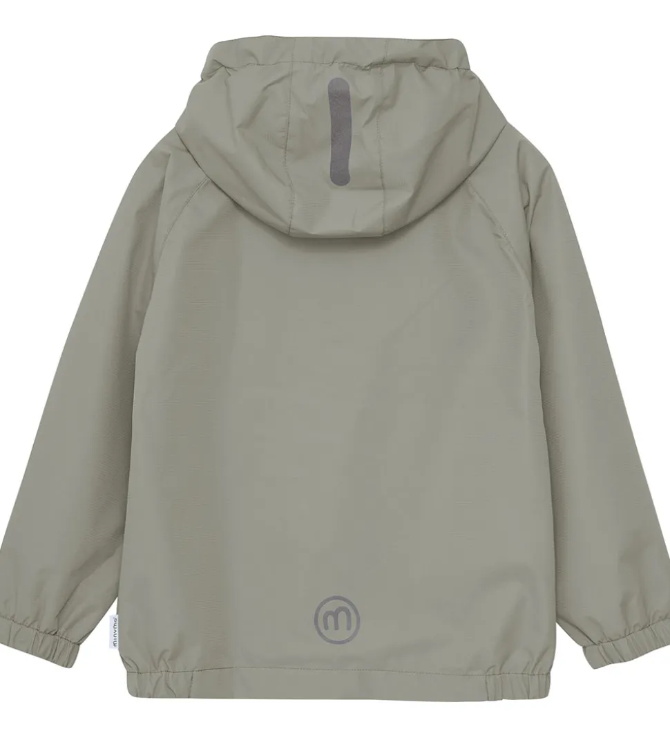 Flot Minymo regnjakke i støvet grøn. Regnjakken er i en lækker PE-kvalitet.
