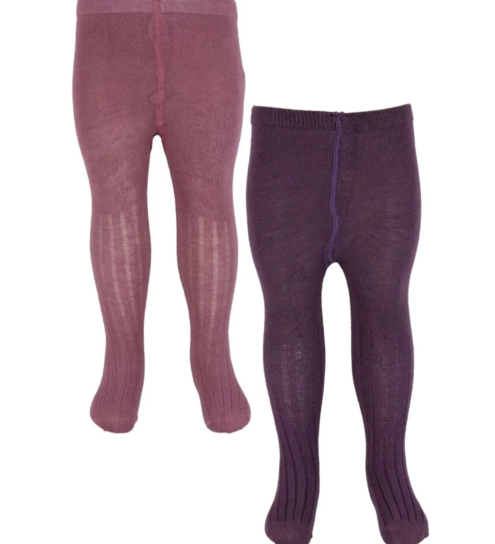 Søde Minymo strømpebukser solgt i en 2-pak i ensfarvet støvet lilla og støvet rosa.