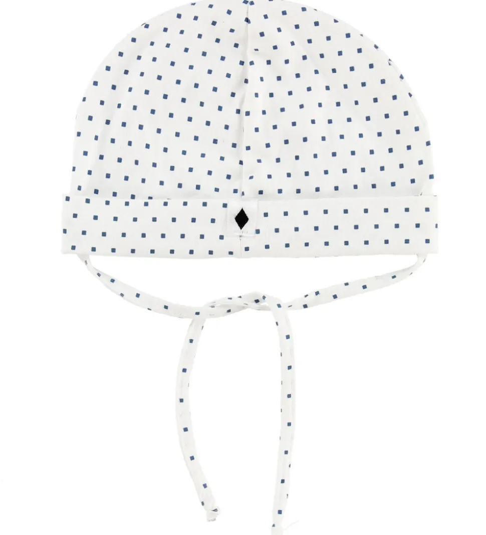 Fin MP hjelm i hvid med allover print af blå firkanter.