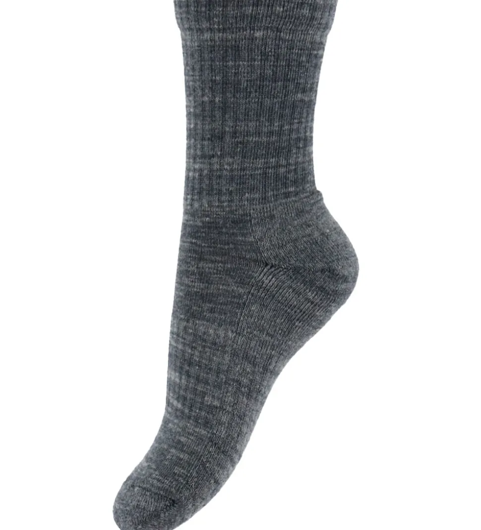 Behagelige MP strømper i en klassisk, mørkegråmeleret nuance. MP strømperne har en ribbet struktur og en elastisk topkant, som sikrer en god pasform.