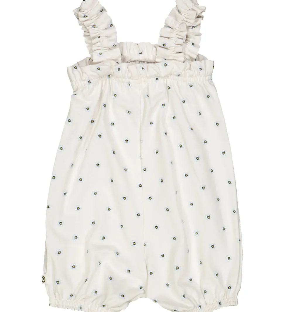 Charmerende Müsli sommerdragt i hvid med et delikat blomsterprint. Sommerdragten har søde flæsedetaljer ved stropperne, hvilket giver et yndigt look. Müsli er kendt for sit stilfulde design.