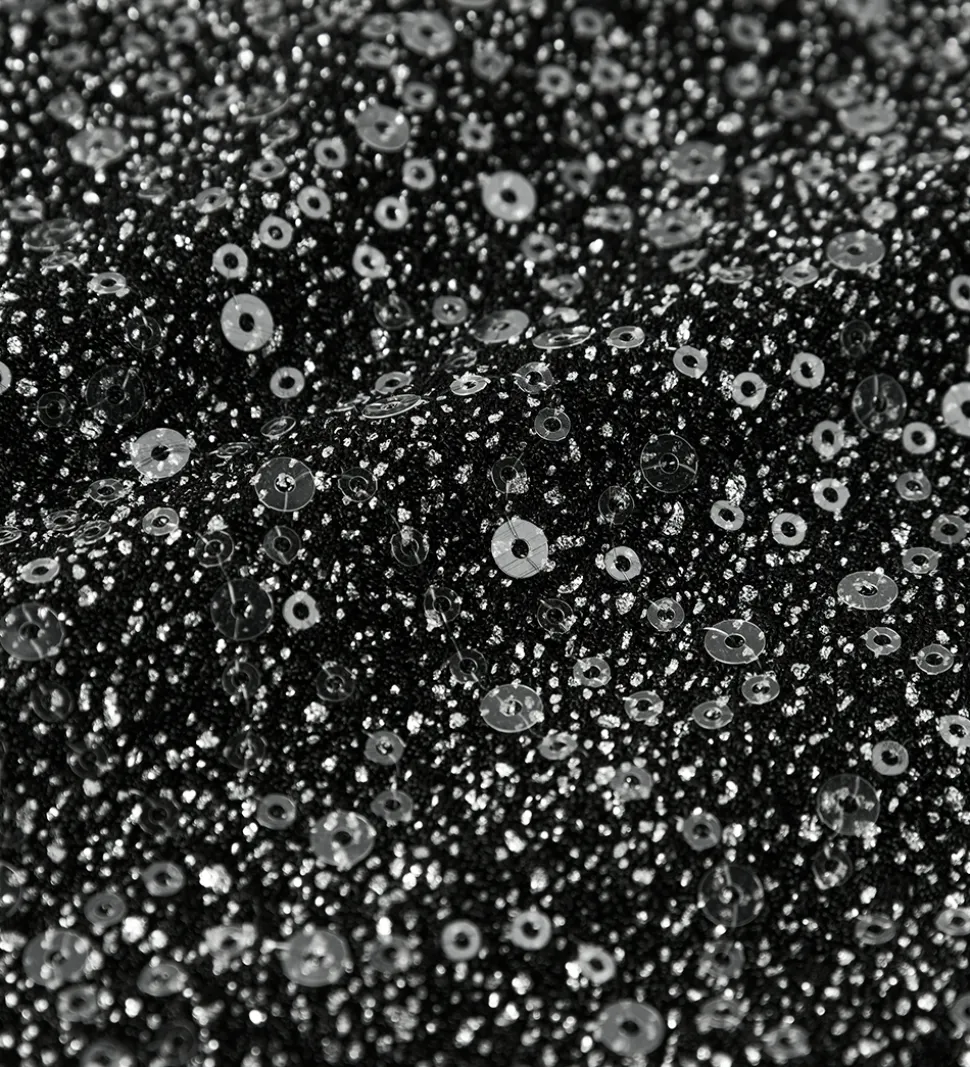 Stilfuld Name It bluse i sort med sølv glimmer og palietter. Blusen har en rund halsudskæring og lange ærmer. Den er fremstillet i en strækbar kvalitet.