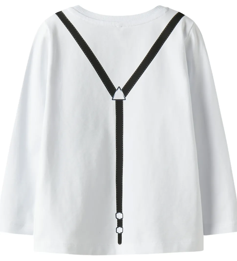 Blusen er hvid med et print af sorte seler og en sort butterfly, der giver et stilfuldt udtryk. Med lange ærmer og rund halsudskæring kombinerer Name It funktionalitet og flot design. En enkel stil, der skiller sig ud på en elegant måde.