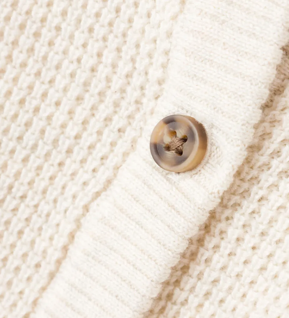 Lækker Name It cardigan i meleret beige og i en flot vaflet mønsterstrik.