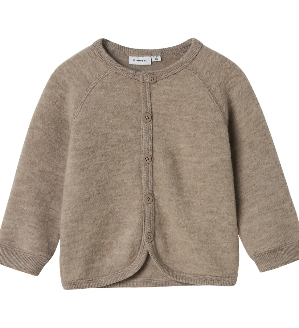 Charmerende Name It cardigan i en mørkebeige nuance med lange ærmer.
