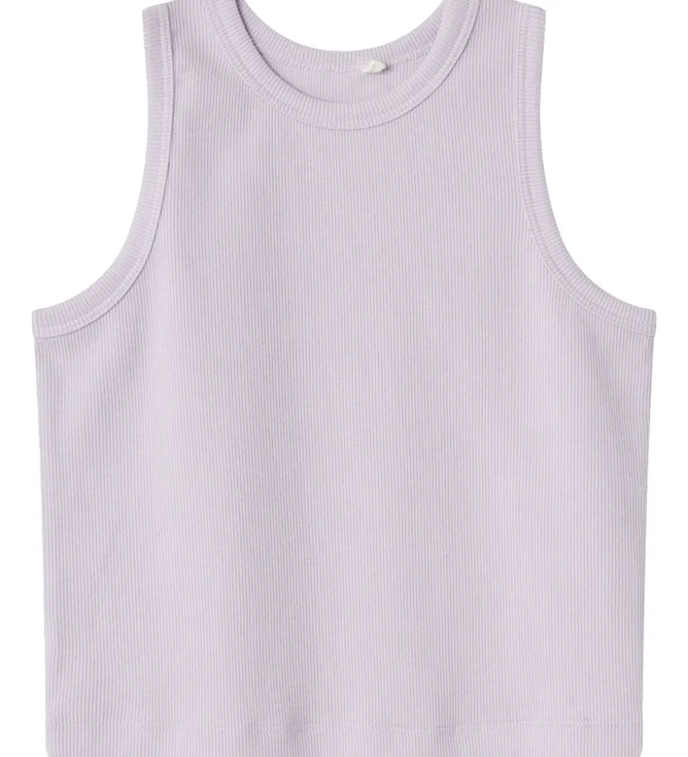 Skøn Name It top i ensfarvet lyselilla med ribstruktur.
