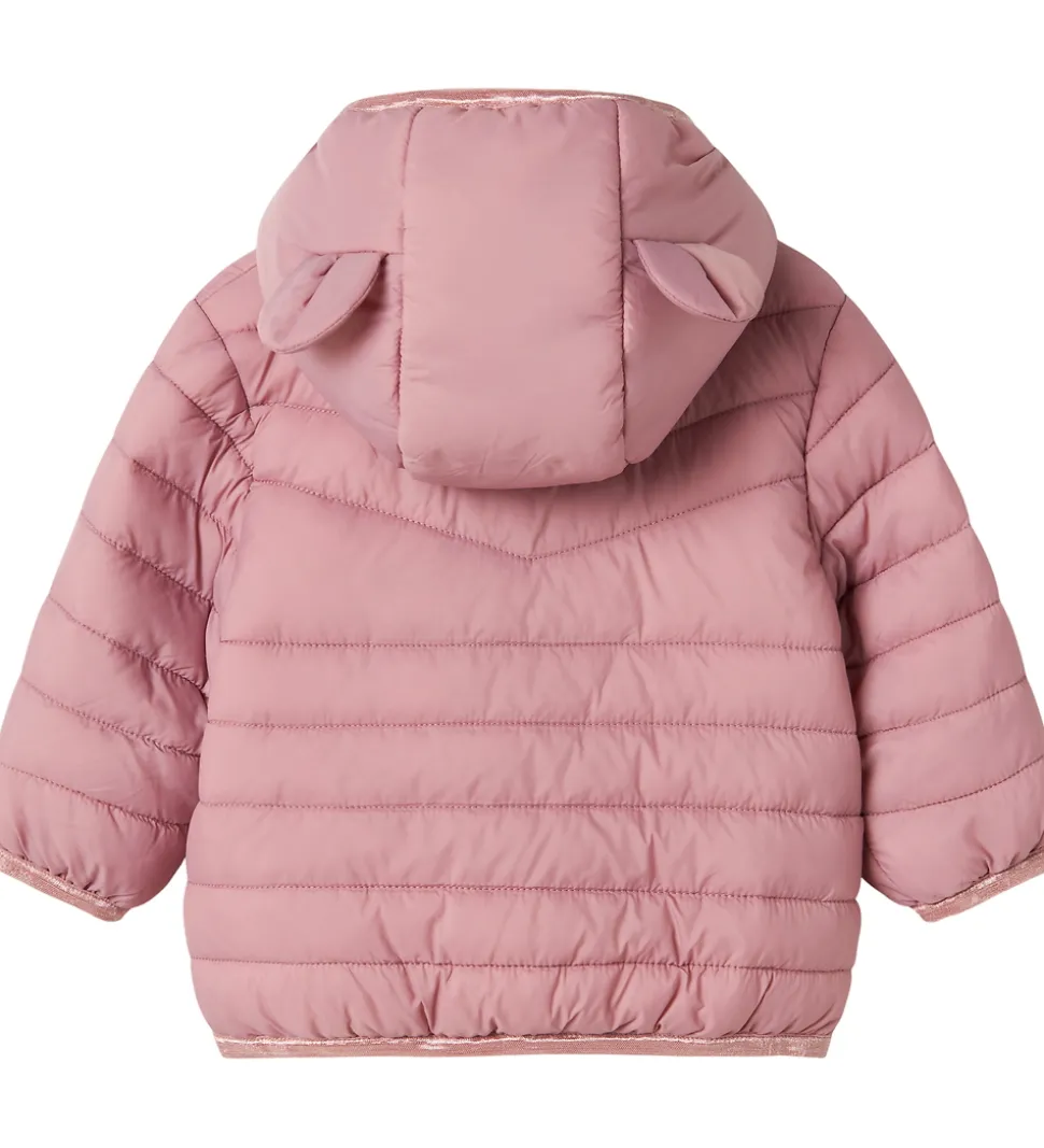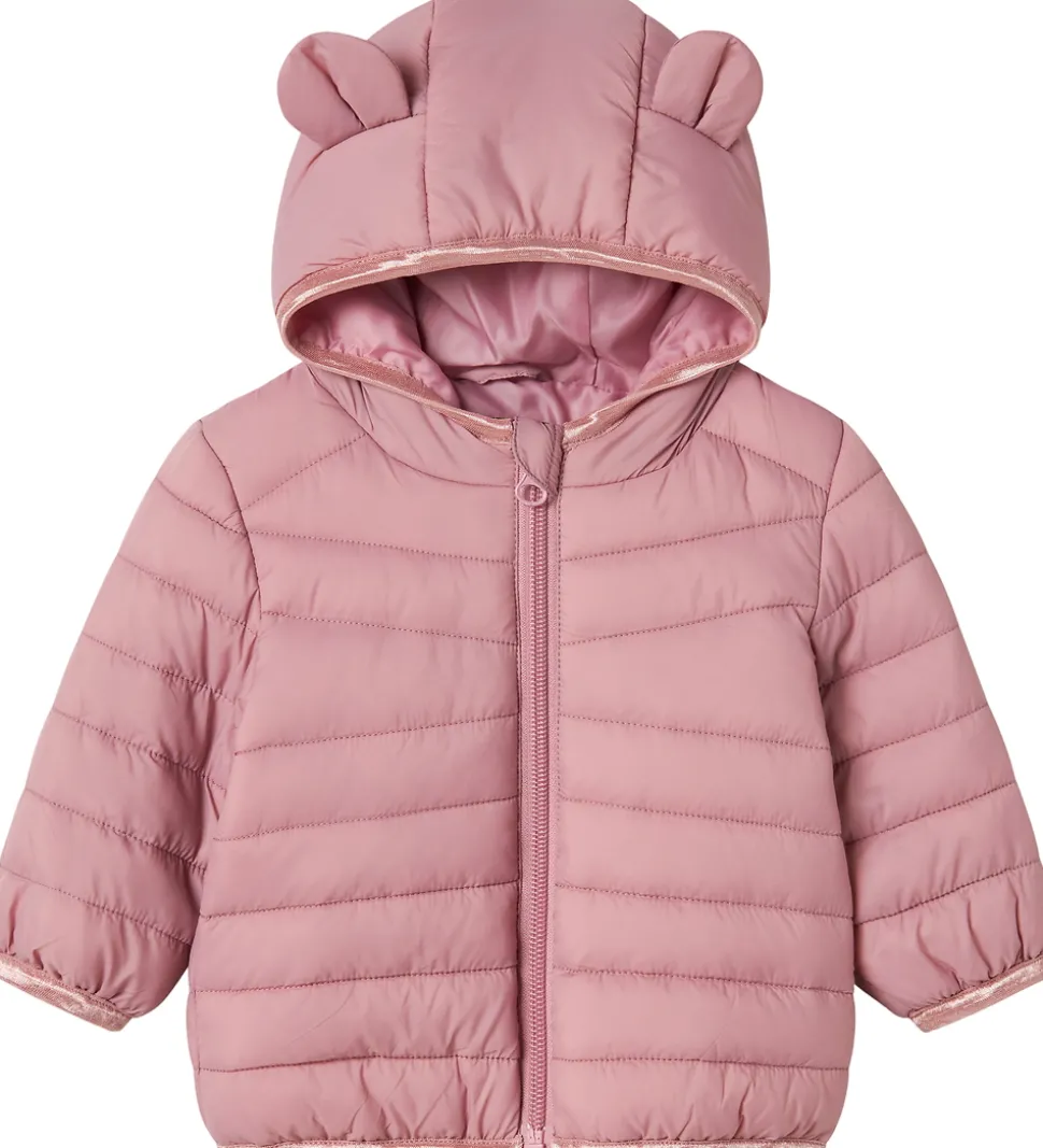 Praktisk Name It dynejakke i støvet rosa, der giver et stilfuldt udtryk. Dynejakken har en aftagelig hætte og en gennemgående lynlås fortil, der sikrer nem lukning.