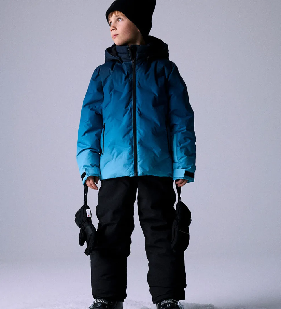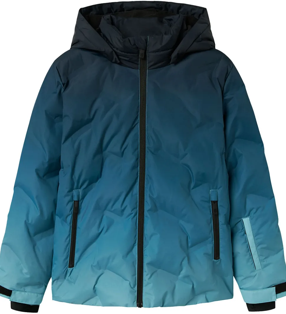 Lækker Name It dynejakke med en indpræget struktur i blå nuancer, som toner sig fra lyseblå til navy. Dynejakken har velplacerede refleksdetaljer.