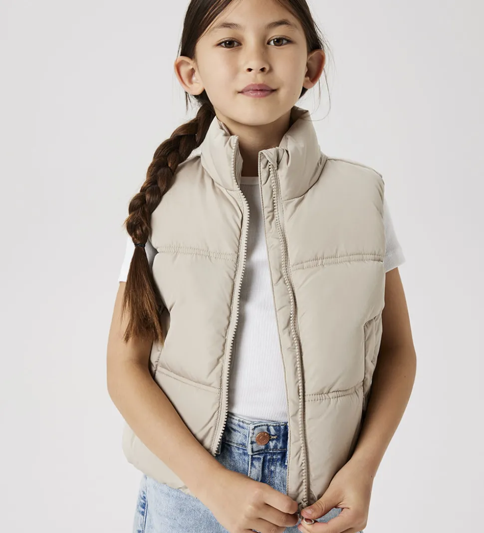 Skøn Name It dynevest i beige med vandrette syninger og et lille logo på venstre bryst.