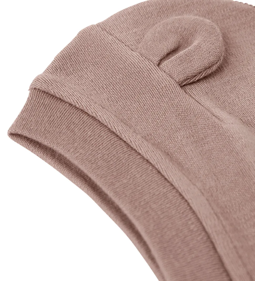 Elegant Name It elefanthue i ensfarvet rosa i en blød uldkvalitet. Elefanthuen har en rund hovedform med søde ører på toppen. I bnden har elefanthuen en split-effekt, der sikrer optimal dækning omkring halsen. Elefanthuen består af et enkelt lag.