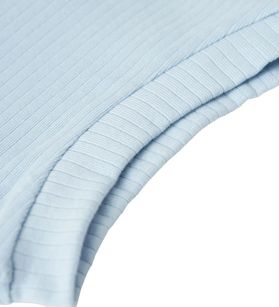 Skøn Name It elefanthue i lyseblå i fin ribkvalitet. Elefanthuen har en rund ansigtsåbning med en ribkant hele vejen rundt. Elefanthuen består af to lag i en blød blanding af økologisk bomuld og modal.