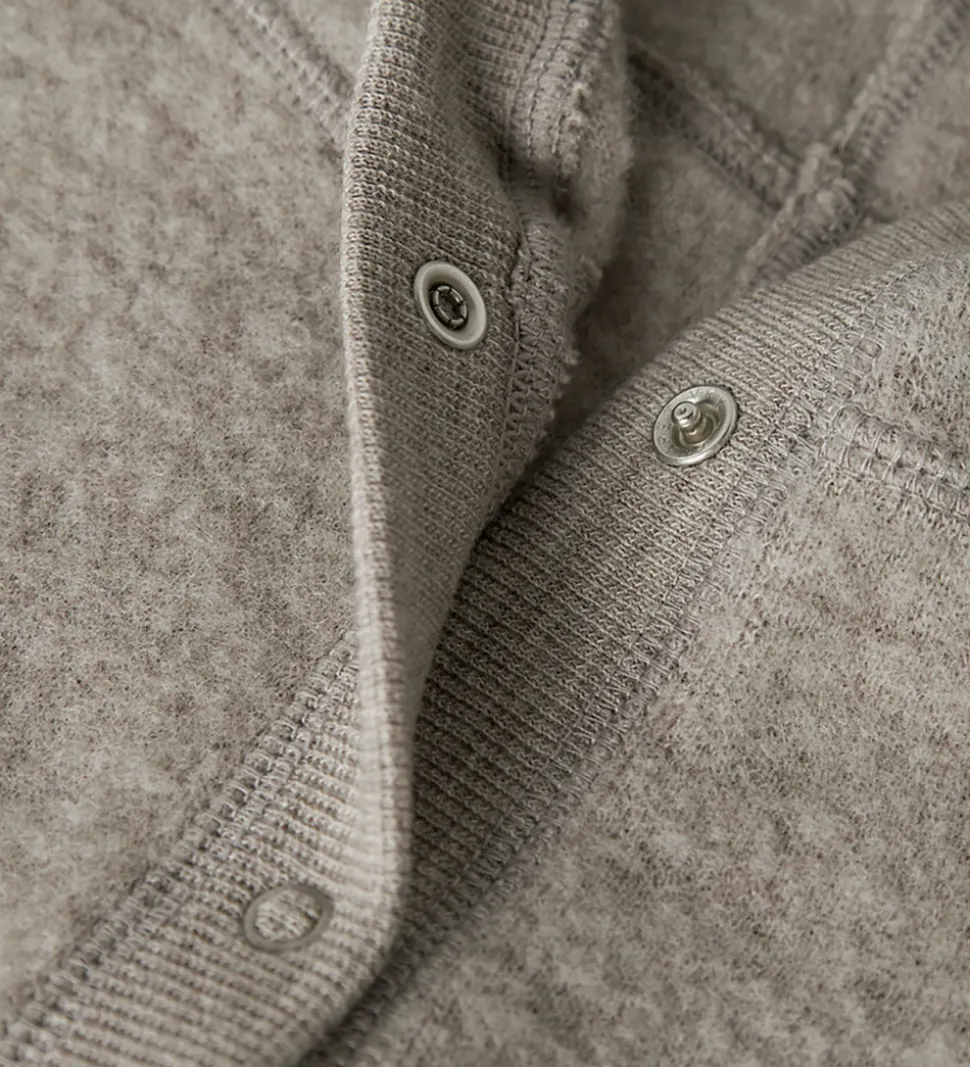 Name It elefanthuen har en rund hovedform med en bred ribkant i ansigtsåbningen. Under hagen er der gennemgående trykknapper, så elefanthuen er nem at få af og på. Elefanthuen består af ét lag lækkert fleece i merinould.