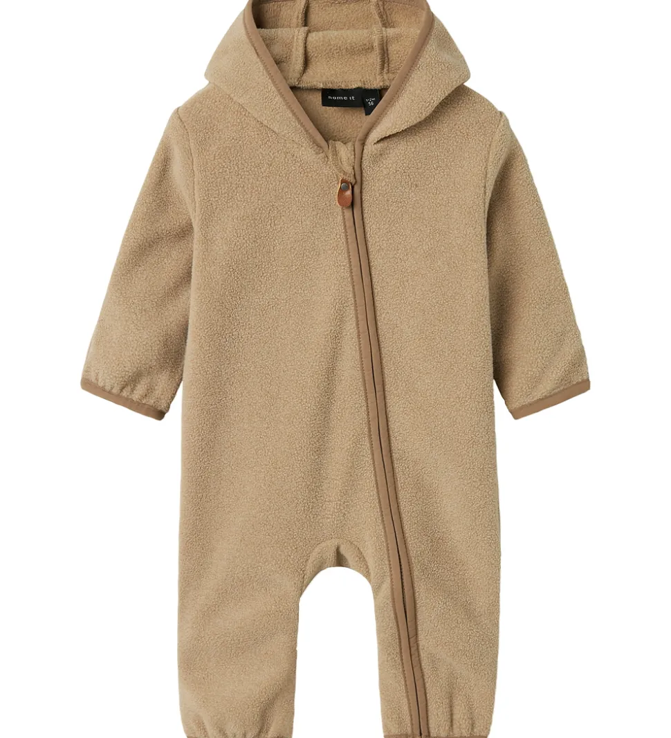 Vidunderlig Name It fleecedragt i en flot, lys brun farve.