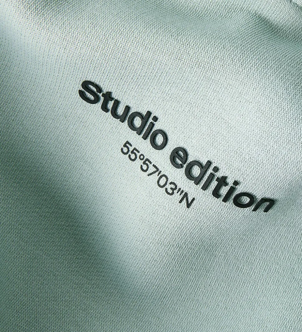 Sej Name It hættetrøje i en blød, mintgrøn farve med et diskret “Studio Edition” print i sort gummi på brystet. Hættetrøjen fra Name It har en fastsyet hætte og behagelig kængurulomme foran. Den har lange ærmer med brede ribkanter i ærme- og taljeåbning. Indvendigt er der blødt, børstet bomuld.