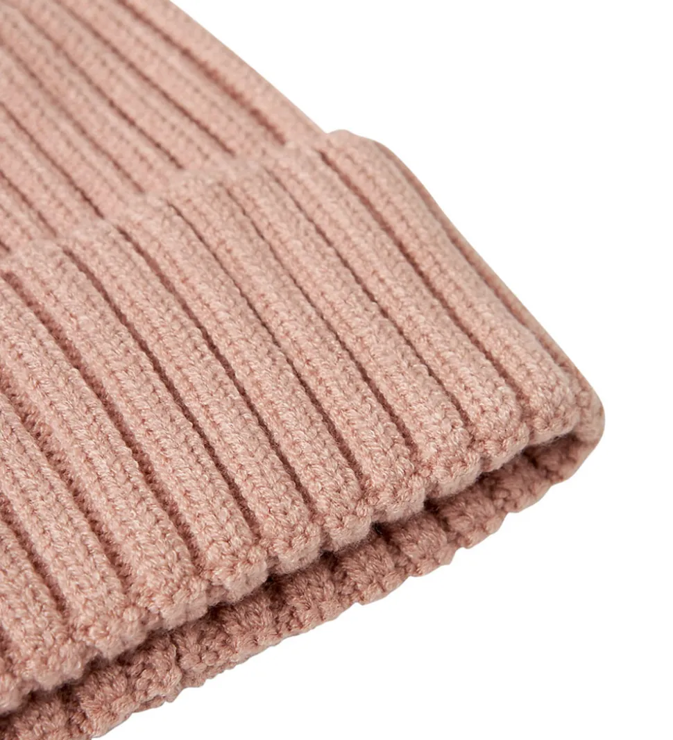 Charmerende Name It hue i en delikat lyserød farve. Huen har en tydelig strikket, ribstruktur, der tilføjer tekstur og dybde. Det foldede kantdesign giver ekstra volumen og stil, hvilket gør Name It huen til et praktisk valg. Designet er både enkelt og funktionelt, med en klassisk silhuet. Den bløde nuance gør den nem at matche med andre beklædningsdele.