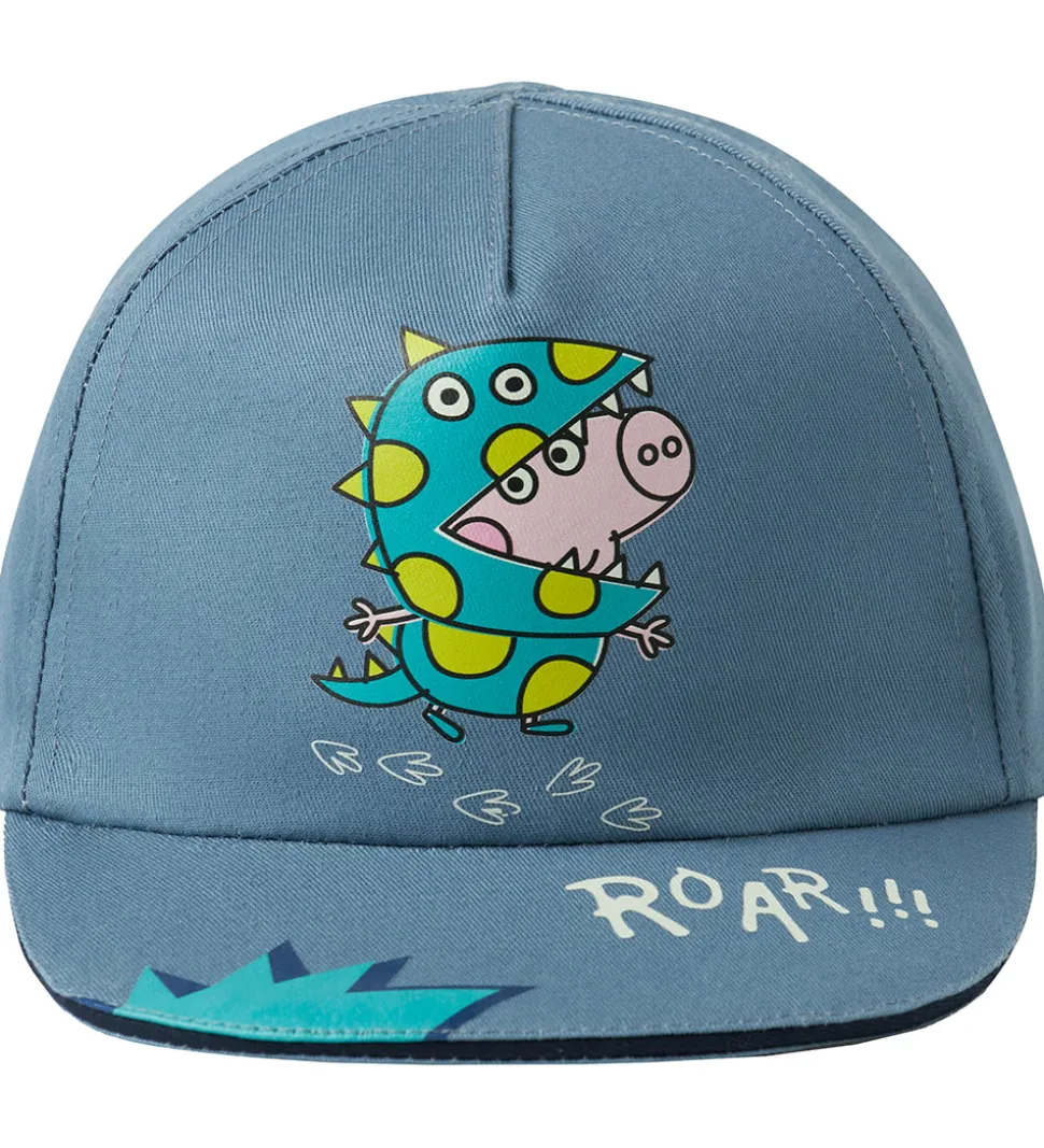 Lækker kasket fra Name It i blå med et sjovt print af Gustav Gris klædt ud som en dinosaur og teksten “ROAR!!!” på skyggen. Kasketten tilføjer et farverigt element til ethvert outfit.