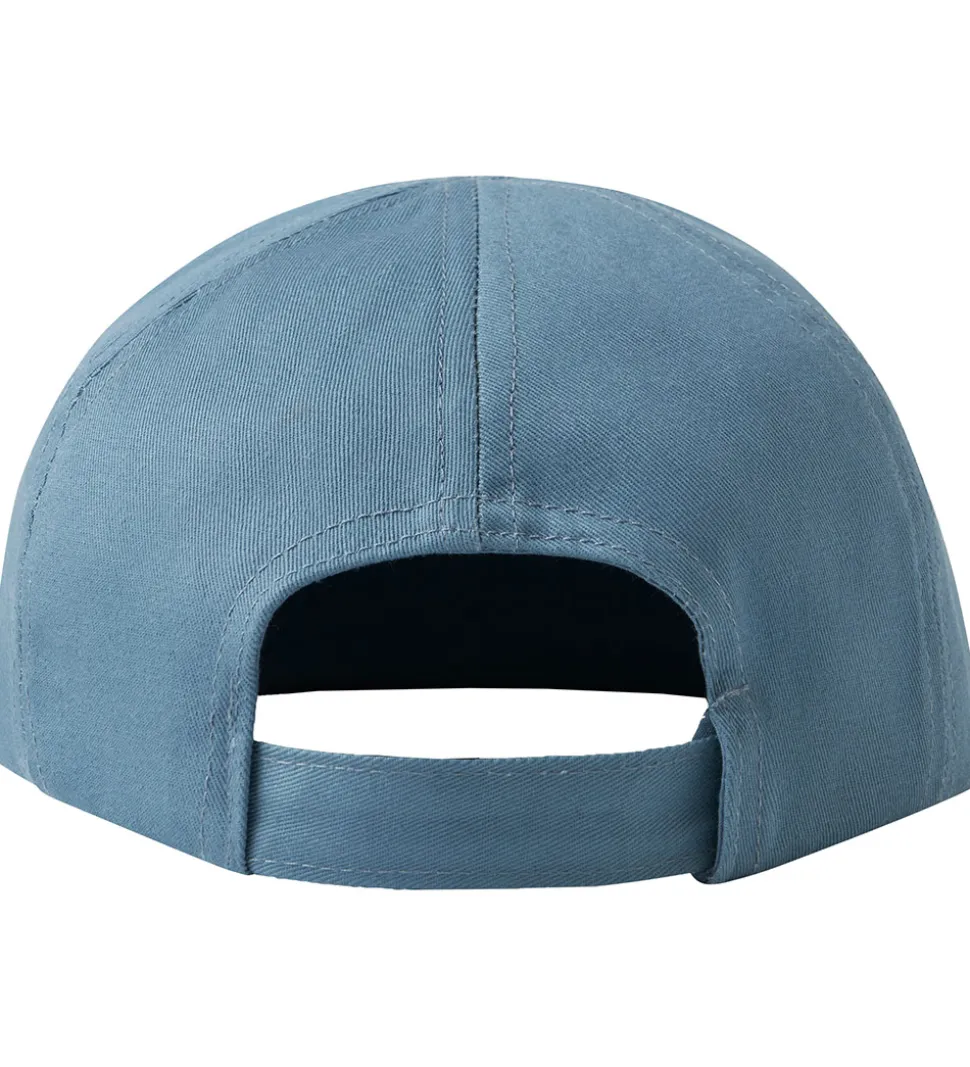 Name It kasketten har en rund hovedform med en fast buet skygge fortil. Den kan justeres i nakken med et praktisk velcrobånd.