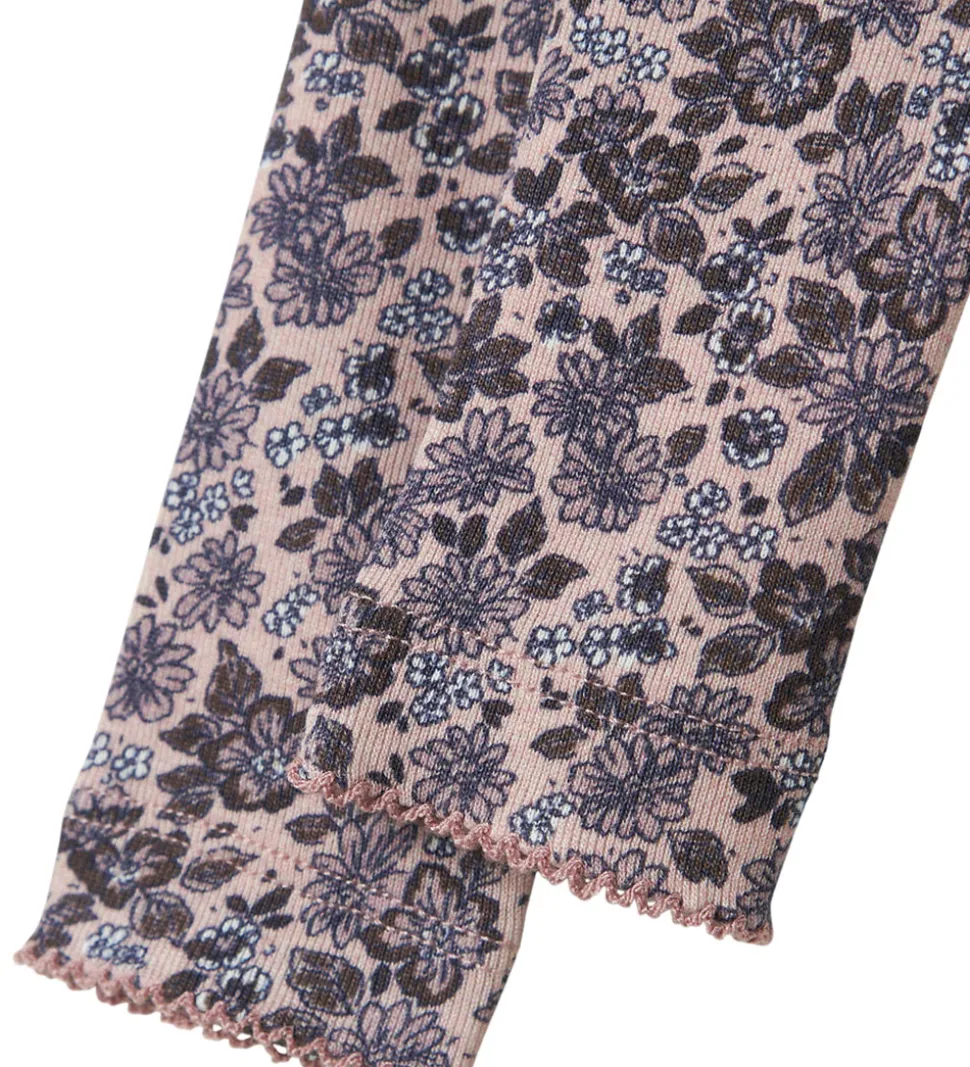 Charmerende Name It leggings i lyslilla med et smukt blomstermotiv i lilla nuancer. Name It leggingsene har en elastisk talje, der giver en god pasform.