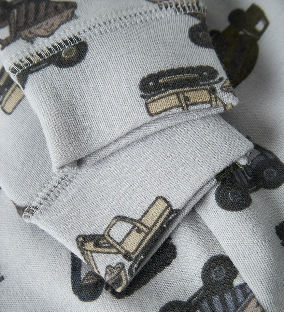 Skønne Name It leggings i lyseblå med alloverprint af arbejdsmaskiner. Name It leggingsene har elastik i taljen, og brede kanter ved anklerne, som sikrer en god pasform. Legginsene er fremstillet af merinould.