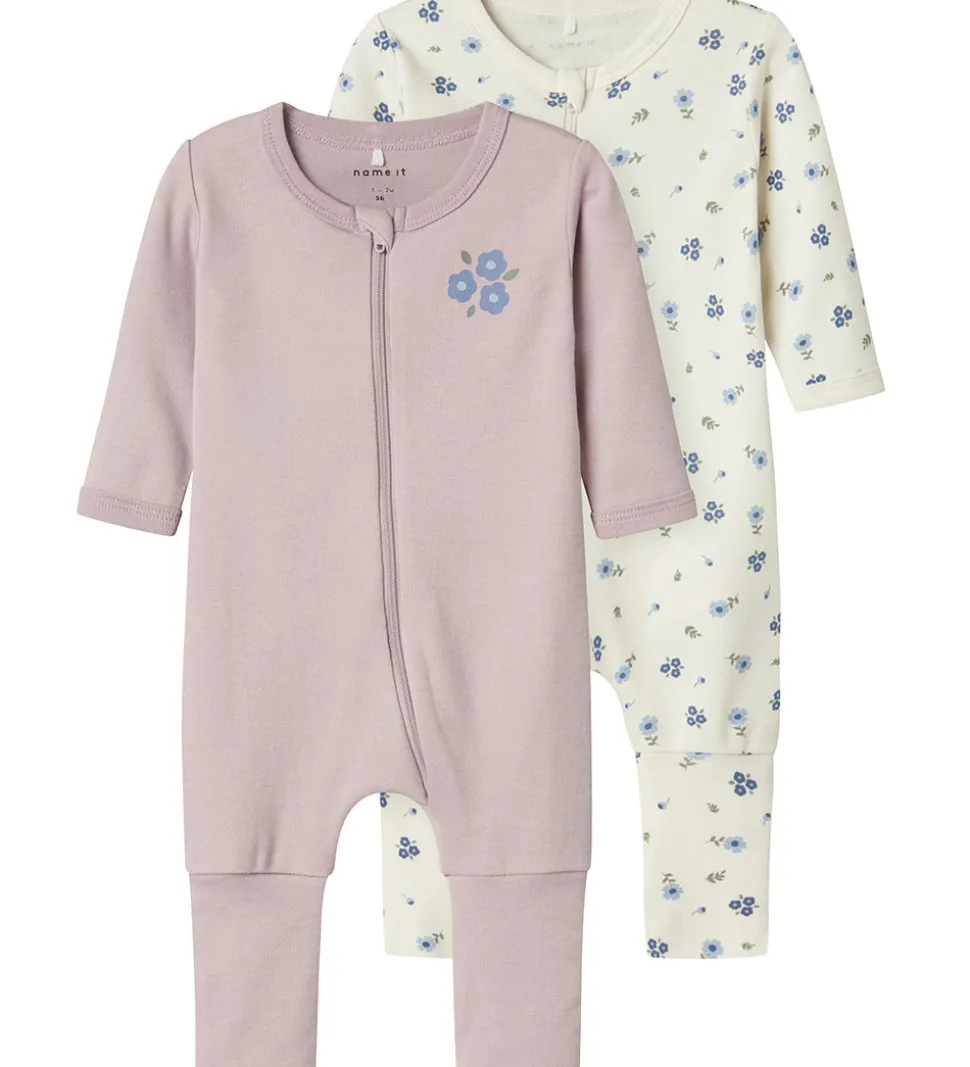 Model: NBFNightsuit 2P Zip FF Jet Flower Noos, Style: 13241755, Farve: Jet Stream