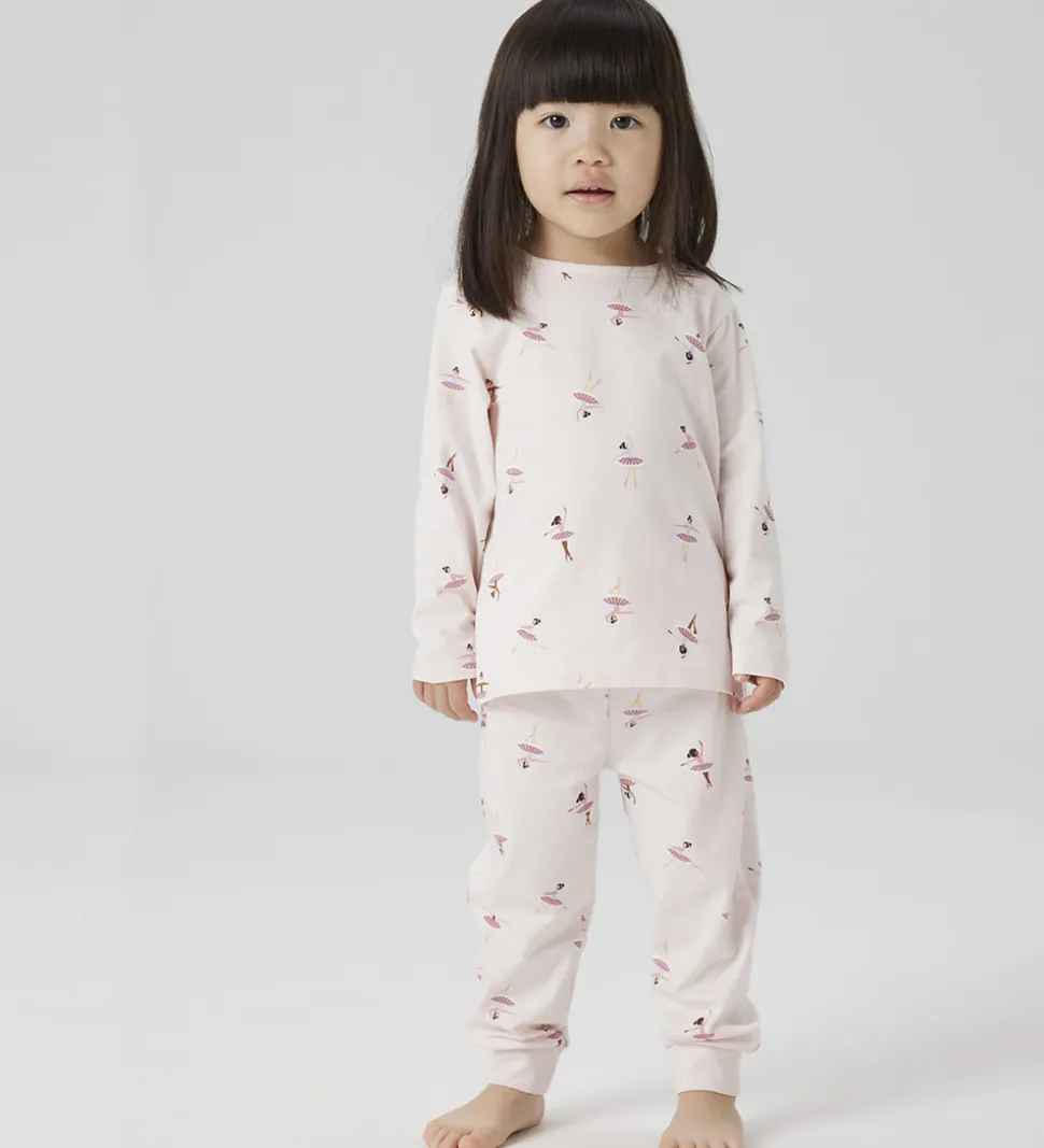 Charmerende Name It nattøj bestående af en natbluse og et par natbukser i en sart, lyserød nuance. Nattøjet har et fint mønster af små ballerinaer, som skaber et sødt og sjovt udtryk. Name It nattøjet er både behageligt og stilfuldt.