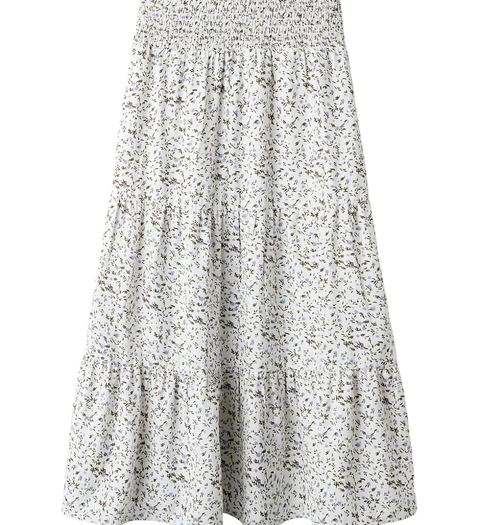 Flot Name It nederdel i hvid med et delikat mønster af små blomster i blå og mørkegrøn. Nederdelen har en luftig pasform med en strækbar elastisk talje. Name It nederdelen har en god vidde, der giver et let og elegant udtryk.
