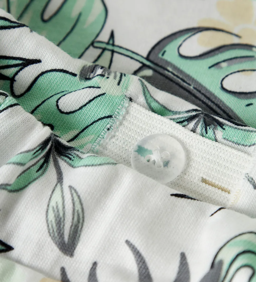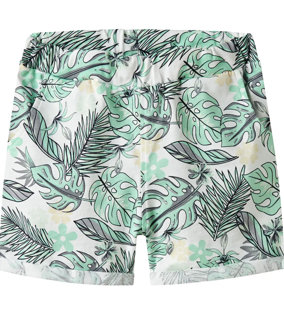 Stilfulde Name It shorts i en hvid med et tropisk bladprint i grønne nuancer. Name It shortsene kombinerer komfort med et iøjnefaldende design, der bringer et strejf af natur til garderoben.