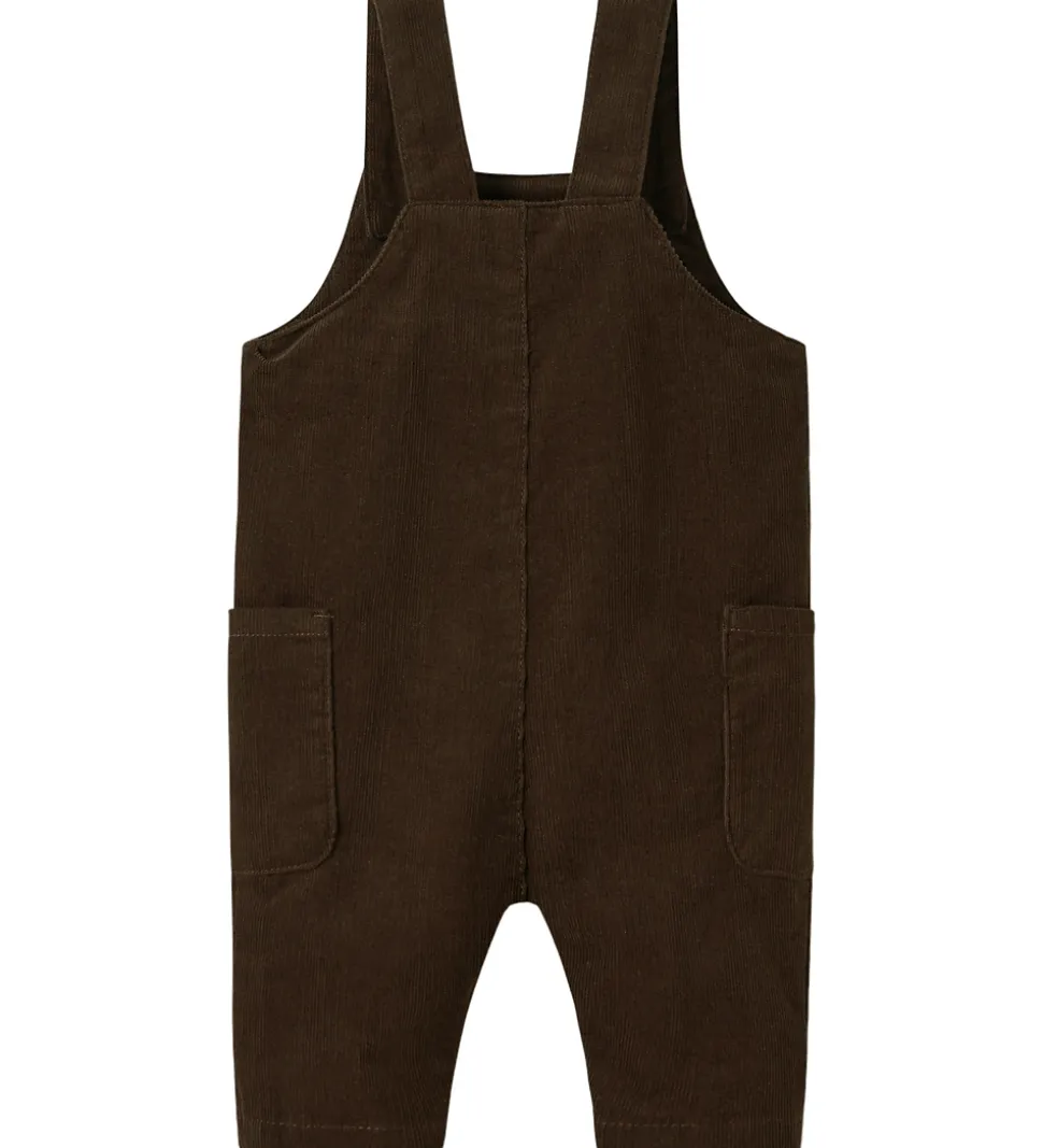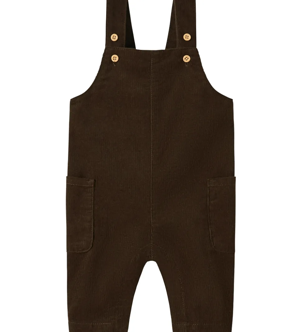 Name It smækbukserne er designet med brede skulderstropper, der kan justeres med knapper foran. Smækbukserne har to praktiske lommer på siderne og trykknapper mellem benene.